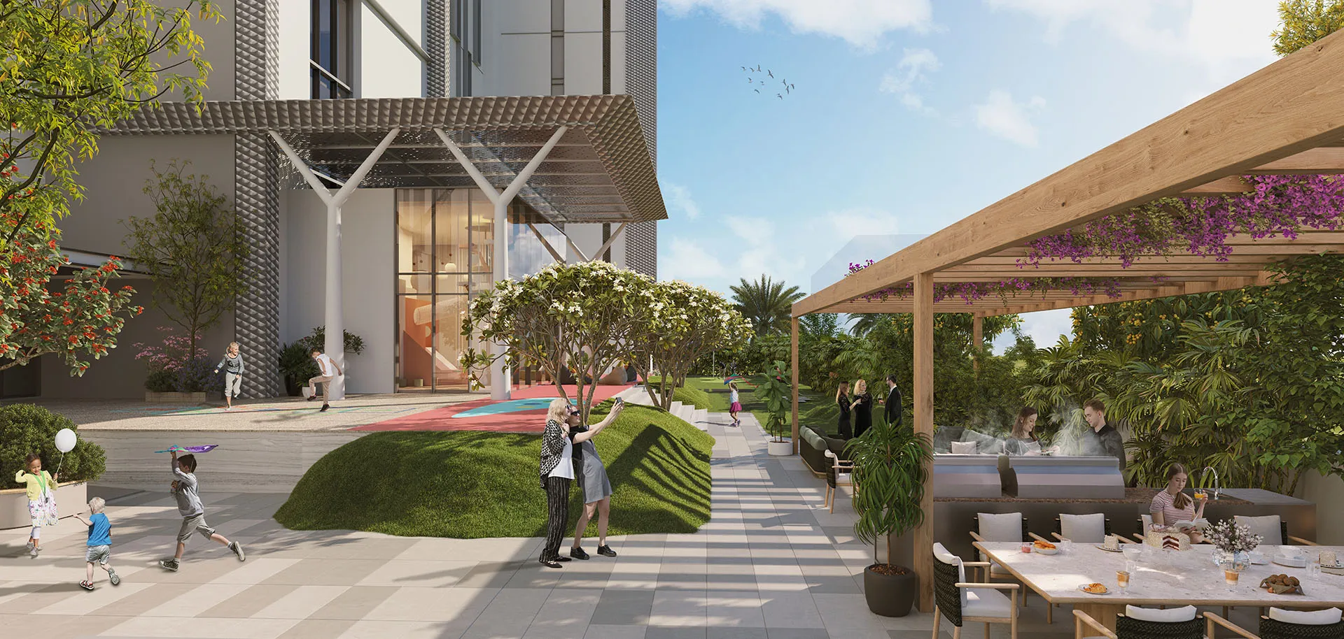 Modern apartments and penthouses in Dubai Hills Estate with golf course views.
