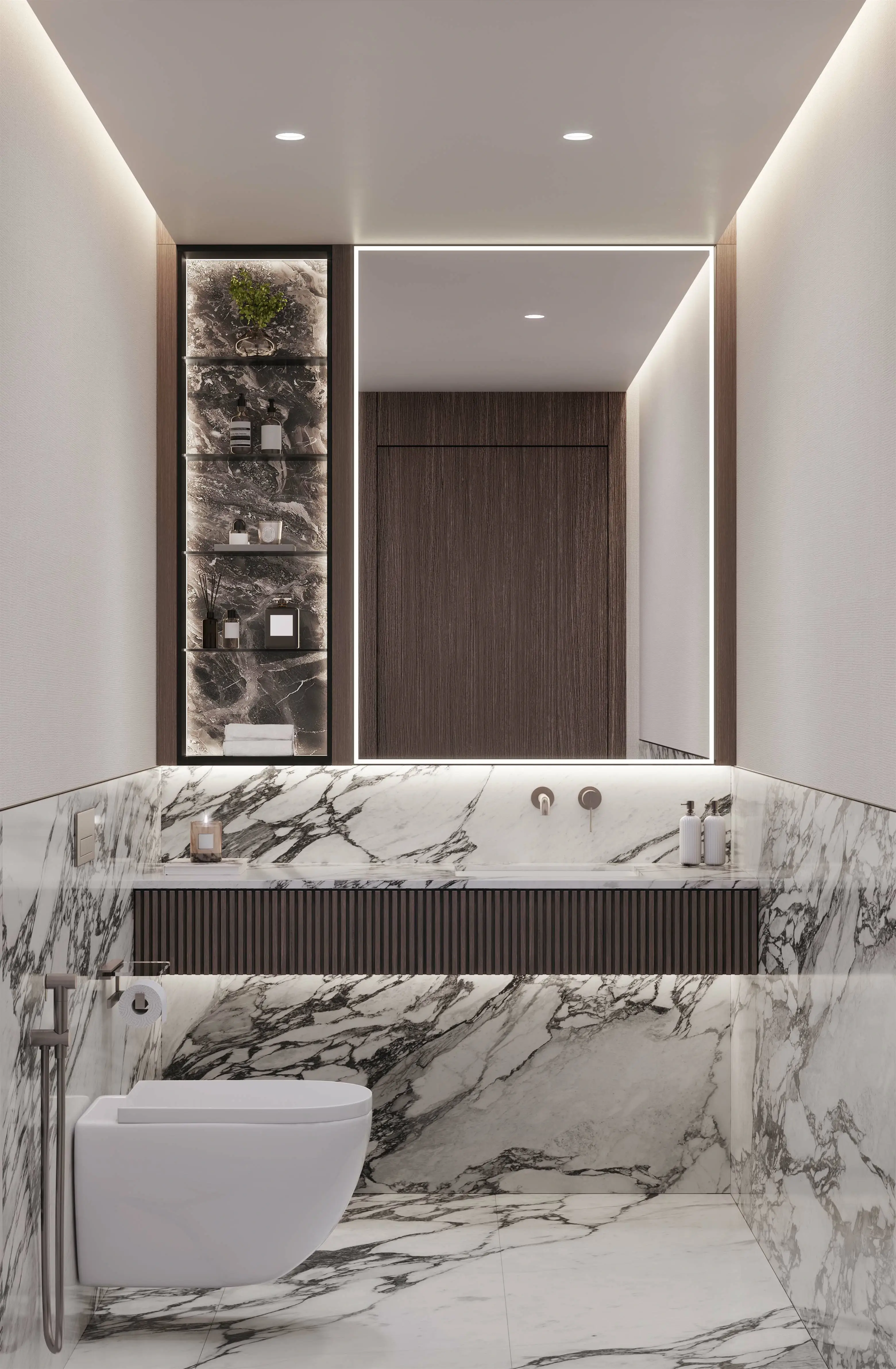 Elegantly designed powder rooms with refined finishes, offering both style and convenience for residents and guests.
