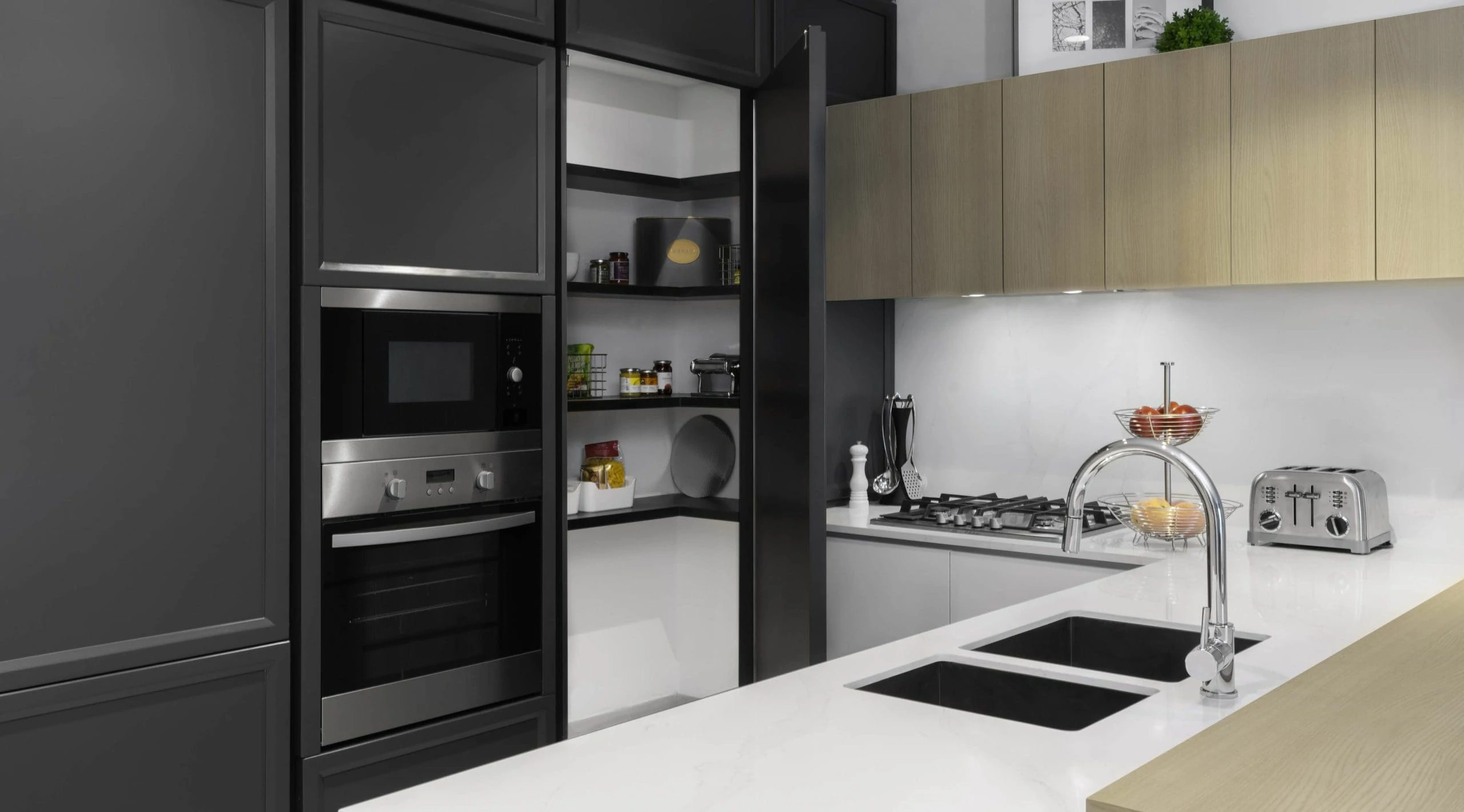 Fully equipped with high-end appliances and smart storage for modern culinary living.