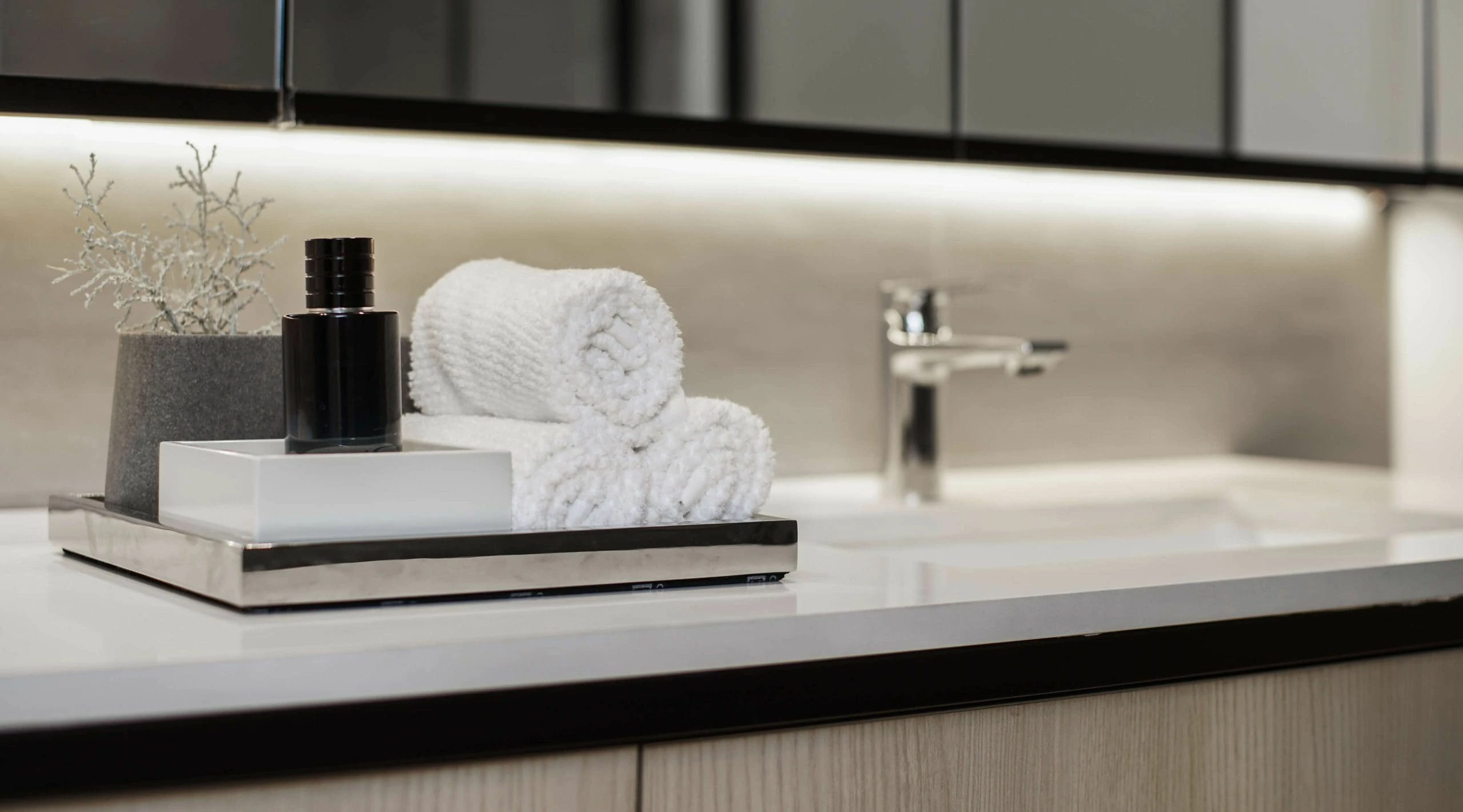 Luxurious fittings, clean lines, and tranquil aesthetics for a spa-like experience at home.